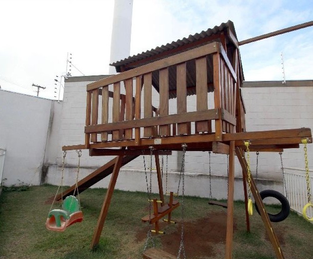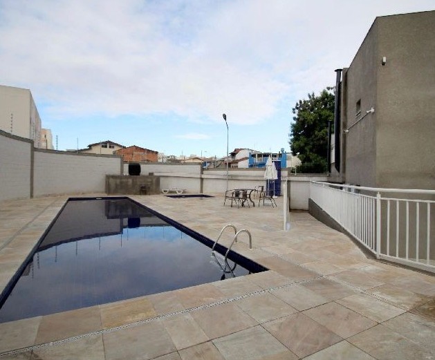 Condomínio com piscina, churrasqueira com forno de pizza, playground, salão de festas.