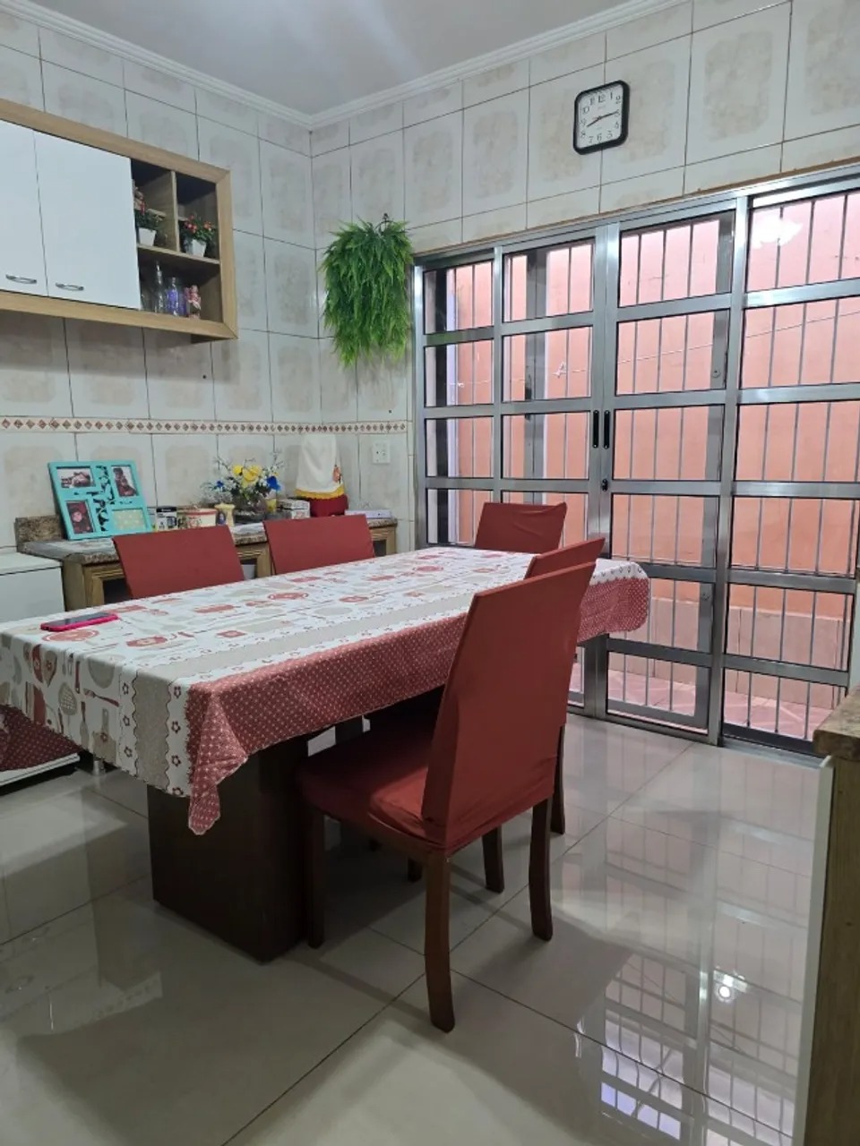 O imóvel possui 2 quartos, sendo 1 deles em edícula nos fundos, junto a 1 banheiro, totalizando 2 banheiros no imóvel. A casa conta com piso em porcelanato polido, área de serviço e armários na cozinha, garantindo praticidade e bom acabamento interno.